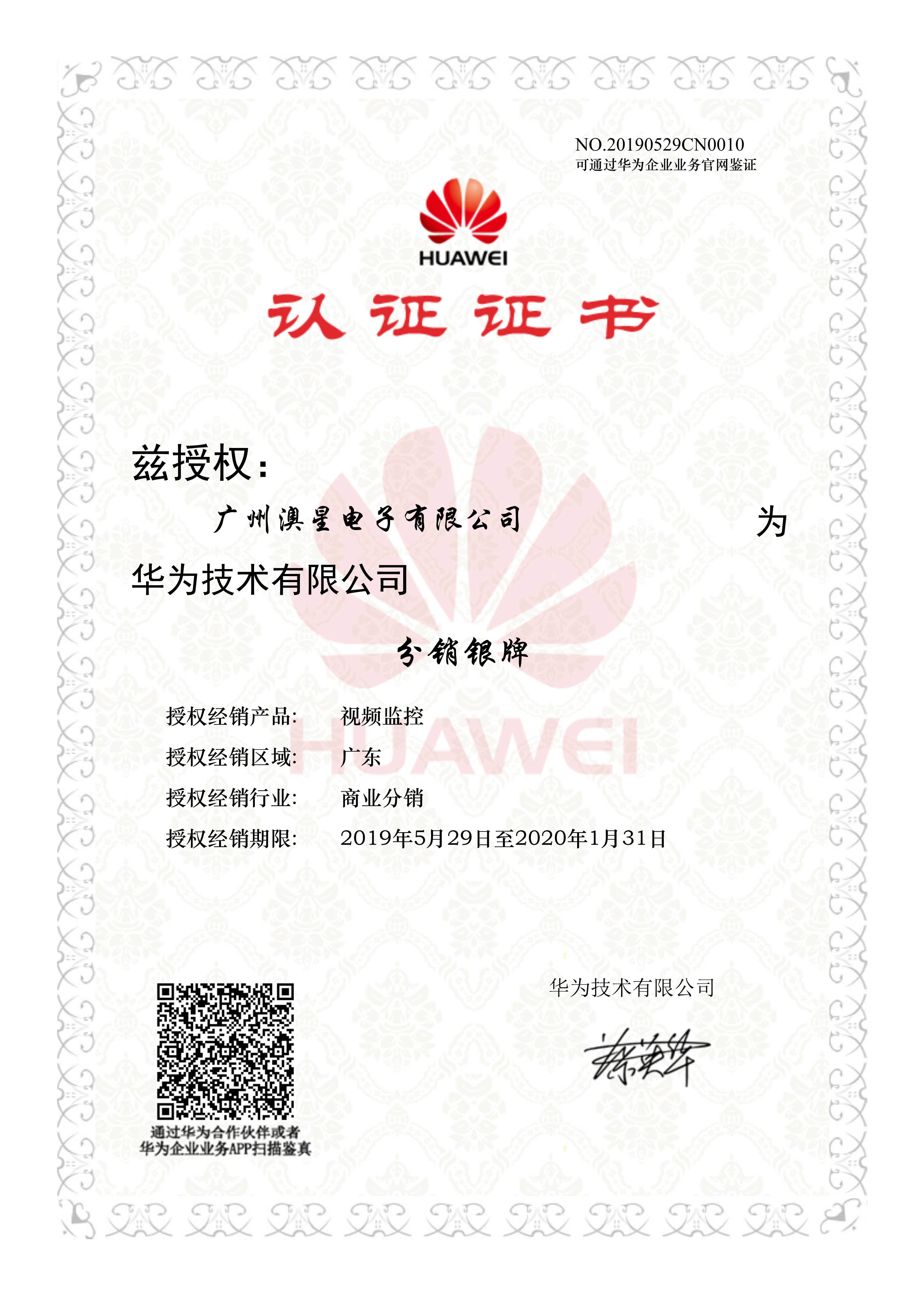 澳星牵手5G巨头华为公司,成为其监控视频领域代理商