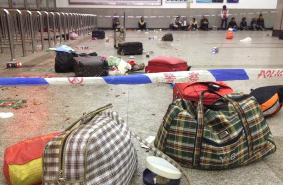 3月1日晚9时20分,10余名统一着装的暴徒蒙面持刀在云南昆明火车站广场、售票厅等处砍杀无辜群众。昆明市政府通报,火车站暴力恐怖案件是由新疆分裂势力一手策划组织。