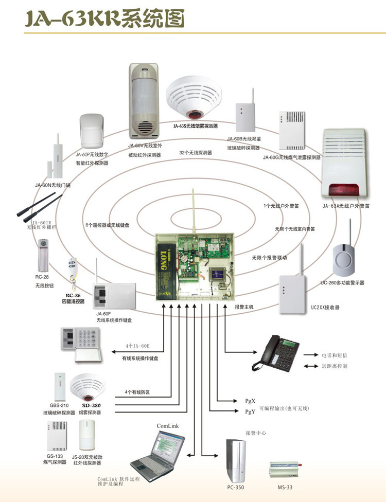JABLOTRON捷豹无线防盗报警系统JK-63系列拓扑图
