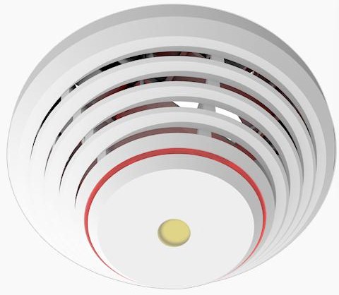 该探测器内置了两个独立的探测器,即光学感烟探测器和感温探测器。光学烟雾探测器的工作原理是利用光散射的原理。它对较大的灰尘颗粒,尤其是存在于浓烟中的颗粒非常敏感。另外探测器内置了温度传感器,当环境温度达到60-65°C时将触发感温探测器产生报警,可针对于某些液体燃烧时,由于产生比较少的烟雾(比如酒精),避免出现漏报的情况。探测器采用无线通讯,内置LED灯和蜂鸣器指示报警状态。