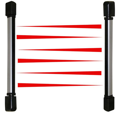 红外栅栏(也叫“红外栏杆”)是主动红外对射的一种,采用多束红外光对射,发射器向接收器以“低频发射、时分检测”方式发出红外光,一旦有人员或物体挡住了发射器发出的任何相邻两束以上光线超过30ms时,接收器立即输出报警信号,当有小动物或小物体挡住其中一束光线时,报警器不会输出报警信号。