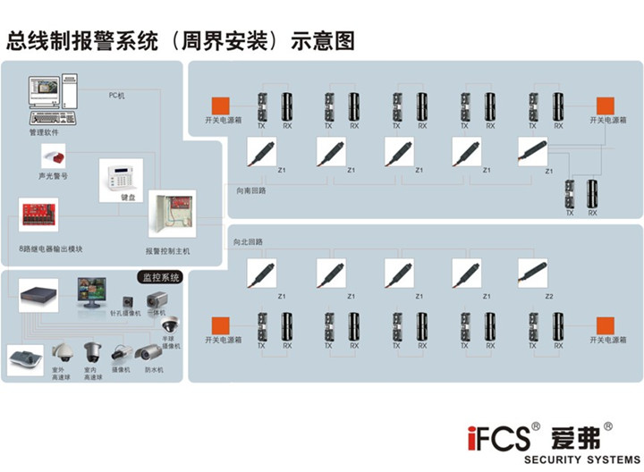 IFCS爱弗爱弗总线制报警系统周界安装示意图